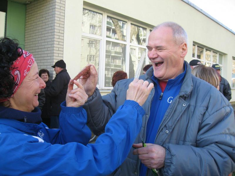 105 Läufer, Geher, Nordic-Walker und Geocacher waren beim diesjährigen Atzendorfer Silvesterkarpfenlauf dabei. Auch Pferde, Schlitten und eine Kutsche gaben dem Ganzen Volksfestcharakter. Das sei auch so gewollt, sagte von der veranstaltenden ZLG der Vorsitzende, Günter Döbbel, der nach einer Aufwärmgymnastik den Start für die Läufer wie jedes Jahr mit einem Silvesterknaller vollzog. Mit von der Partie waren – wenn auch passiv - Staßfurts Stadtratschef Dr. Walter Blauwitz, der seinen Sohn nach Atzendorf begleitet hatte, und aktiv Ortsbürgermeister Peter Rotter. Dabei konnte jeder Läufer seine Laufstrecke von 1000, 2000, 4500 oder 7500 Metern selbst auswählen. Die Nordic-Walker waren eine halbe Stunde früher gestartet und beim Geocaching, einer Art Schatzsuche mit Navi-ähnlichen Geräten, musste schon vom Start weg Kontakt mit den GPS-Satelliten gesucht werden. Als erster überhaupt kam ein 75-jähriger Sportfreund aus Hecklingen mit seinen Nordic-Walkingstöcken von der 2000-Meter- Strecke zurück. Bei den Läufern war auf der langen Strecke Torsten Blauwitz vor Ingo Bieganski (beide Gänsefurter Sportbewegung) und Christoph Lampe erfolgreich. Er bekam den von Johann Hauser dafür ausgelobten Silvesterkarpfen. Bei den Damen war Ina Schöler von der heimischen ZLG die Schnellste. Nachdem alle am Ziel waren, wurde bei alkoholfreiem Glühwein und Gebäck das Ganze ausgewertet. Fünf weitere Karpfen wurden verlost.