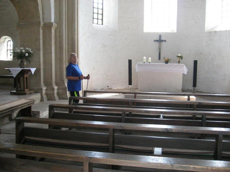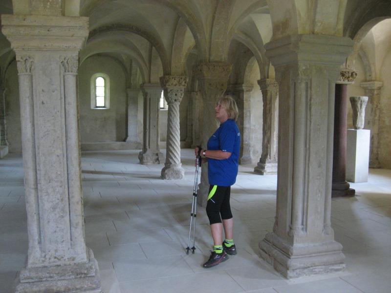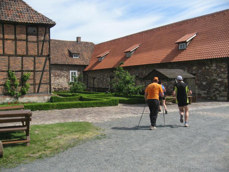 Jens-Uwe Börner, mit den 11-Kilometer-Läufern unterwegs, erspähte mit seinem Fotoapparat am Horizont den Brocken. Spätestens hier kam wohl der Entschluss mehr auf die Bildmotive als auf die Laufzeit zu achten. Die Läufer erreichten über den Friedrichshohenberg den höchsten Punkt der Strecke und bogen nun ebenfalls in Richtung Konradsburg ab. Während sich einige Walker und natürlich auch Herr Börner Zeit für eine kurze Besichtigung nahmen, eilten die Läufer durch den kleinen Burggarten wieder hinab nach Ermsleben.
