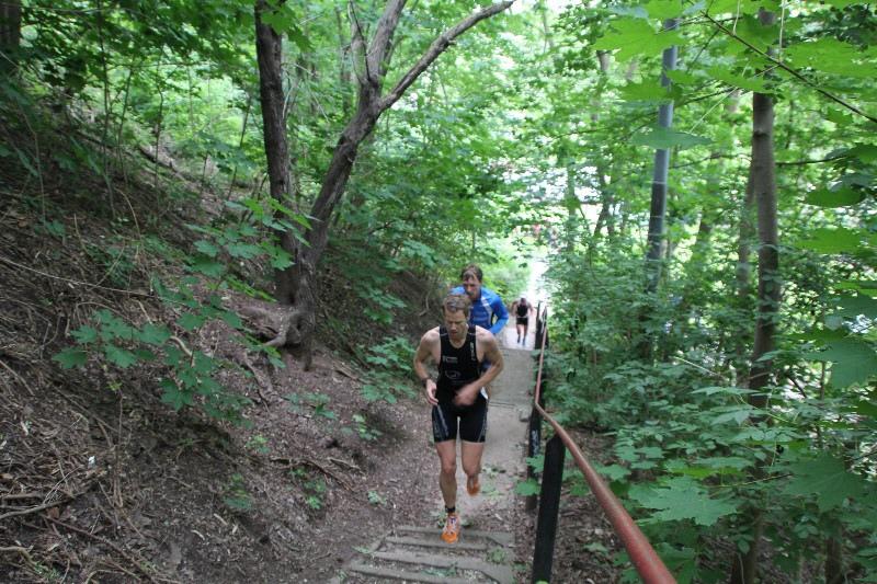 Alles drehte sich um vier Absätze à ungefähr zehn Stufen, an denen schon so mancher Starter nicht unbedingt gescheitert ist, aber doch wertvolle Sekunden eingebüßt hat. Das ganze Prozedere zweimal auf der abschließenden Zehn-Kilometer-Laufdistanz. "Viele laufen nicht, sondern gehen die Treppe hoch. Die ersten zwei Absätze nehme ich in Zweierstufen", verriet Annett Lampe und liebäugelte sogar damit, die Stufen gern auch ein drittes oder viertes Mal zu erklimmen: "Ich liebe die Treppe einfach. Dort geht es um Kraft."