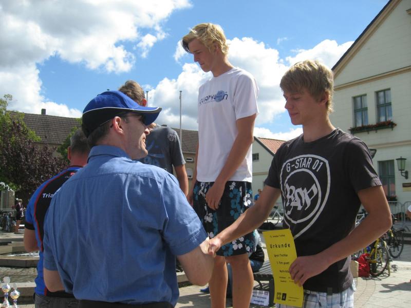 Geschadet hat es aber nicht. Während Mutter Annegret den Sieg bei den Seniorinnen 2 einfuhr und Gesamtsechste wurde, sicherte sich Martin Rang zwei in der männlichen Jugend A und schaffte mit Platz drei auch in der Gesamtwertung den Sprung auf das Podium. Wenngleich "alles ganz gut lief", hatten es vor allem Lauf- und Radstrecke in sich. Die abschließende Disziplin führte die Athleten gleich zu Beginn eine Natursteintreppe herunter, "da hatte man nach dem Radfahren noch gar kein Gefühl in den Beinen." Auf den zwei Rädern war dies jedoch umso mehr gefragt. Geschuldet war dies der "Haarnadel" am Wendepunkt: "Da musste man auf Tempo Null runter."