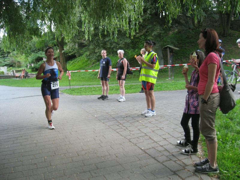 Als diese die Ziellinie schon überquert hatten, tobte sich Annett Lampe noch auf der Laufstrecke aus, was durchaus wortwörtlich und nicht despektierlich gemeint ist: "Dadurch, dass es diesmal im Uhrzeigersinn um den See ging, waren auch drei kleinere Hügel zu bewältigen. Das kostet Kraft, aber die haben wir ja alle." Die hat vor allem sie und so stoppte ihre Uhr nach schnellen 50:35 Minuten zu Fuß und in einer Gesamtzeit von 2:39:33 Stunden. Es folgten noch Ralf Rosenmeier (2:39:37 Stunden) und Toralf Schmidtschneider (2:55:29 Stunden). "Es war ein klasse Wettkampf. Alle waren zufrieden."