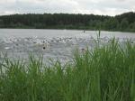 In der Nähe von Stendal, am idyllisch gelegenen Waldbad Wischer, starteten am Wochenende knapp 90 Teilnehmer über die ausgeschriebene olympische Distanz des SV Wasserfreunde Stendal 1923. Unter ihnen auch sechs Mutige der Gaensefurther Sportbewegung. Routiniert liefen die Vorbereitungen ab. Nachdem das Fahrrad mit Helm, Schuhe und Startnummerngürtel neben der Wasserschüssel für die Dreckfüße ihren Platz im Wechselgarten gefunden hatten, erfolgte im 21 Grad warmen Baggersee der Startschuss für die 1,5 Kilometer lange Schwimmstrecke. Im Kampf um die Positionen geriet der stille See mächtig in Wallung, bis sich die einzelnen Schwimmer wie an einer langen Kette eingereiht hatten. Da zwei Seerunden zu absolvieren waren, mussten die letzten fast bangen, von den ersten eingeholt zu werden. Jens-Uwe Börner, einfach nicht als Schwimmer geboren, hatte noch 750 Meter vor sich, als nach gut 22 Minuten der allererste Schwimmer aus dem Wasser hechtete. Starke 27:49 Minuten und damit schnellster Gaensefurther war Ralf Rosenmeier, gefolgt von Steffen Schöler, Torsten Blauwitz und Florian Börner. Die genannten dürften bereits auf der Fahrradstrecke gewesen sein, als auch Ingo Bieganski endlich das nasse Element hinter sich bringen konnte. Und nach knapp 45 Minuten hatte es sogar Jens-Uwe Börner geschafft. Bis zum wartenden Fahrrad mussten ungefähr 100 Meter im weichen Sandstrand zurückgelegt werden, was zusätzlich an den Kräften zehrte. Abkühlung verschaffte dann zunächst der Fahrtwind auf der durchnässten Kluft. Aber die hügelig zu fahrende 43,5 Kilometer lange Radstrecke heizte den Sportlern schnell wieder ein. Während die Ausreißer ziemlich dicht zusammen um jede bessere Position kämpften, versuchten Bieganski und Börner von hinten Plätze gut zu machen. Auch Börner gelang dies, trotz schwerem Stahlrad. Mit den Rädern wieder im Wechselgarten angekommen, sollte wie schon so oft die Laufstrecke die Entscheidungen bringen. In der Gaensefurther Spitze hatte sich Blauwitz kämpferisch nach vorn gearbeitet. Sollte es anfangs garnicht laufen, siegte er am Ende knapp vor Schöler. Prima in Form erwies sich auch Rosenmeier, der nur auf der Laufstrecke letztlich einbrach, den Vorsprung jedoch knapp vor Börner Junior halten konnte. Beide kamen in ihren Altersklassen auf das Podest. Dann folgte Bieganski, welcher durch seine 43-er Laufzeit noch so manchen Sportler überholt hatte. Inzwischen erfolgte bereits der Aufruf, den Wechselgarten für den Jedermann-Triathlon zu räumen. Zu diesem Zeitpunkt kam auch Jens-Uwe Börner endlich ins Ziel. Drei Stunden Fitness lagen hinter ihm. Eine Cola später stellte sich auch bei ihm der zufriedene Gesichtsausdruck ein. Bereits über den gesamten Tag herrschte Anspannung pur bei Jana Bieganski. Denn nun war es endlich soweit, der Start beim Jedermann-Triathlon über 750 Meter Schwimmen, 14,5 Kilometer Fahrrad fahren und fünf Kilometer laufen. Mit ihr stand zum ersten Mal Jana Berger am See, welche ganz relaxt ihr Triathlon Debüt angehen wollte. Beide gaben ihr bestes und bei Bieganski reichte es sogar für den dritten Platz in ihrer Altersklasse. Nach Siegerehrung und Tombola ging ein langer und aufregender Wettkampftag zu Ende. Beste Vorbereitungsarbeit auf den 11. Gaensefurther-Schlossbrunnen-Triathlon!