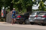Geschwommen wurde rund um die sogenannte Spülinsel, eine kleine Insel mit Campingplatz, im Hafenbecken von Havelberg gelegen. Die Wasserqualität war trotz des Hochwassers als unbedenklich eingestuft und nicht trüber als auch in den Jahren zuvor. Auf den letzten 500 Metern, bog man dann in den eigentlichen Flusslauf der Havel ein, was ein wenig ''Rückenwind'' bedeutete. Nach guten hundert Metern Laufstrecke zum Wechselbereich, ging es aufs Rad um drei Runden von je 22 km zu absolvieren. Die Strecke ging nördlich von Havelberg über Dahlen, Nitzow um nach 11 km in Quitzöbel zu wenden. Der Wind spielte komischerweise auf der Hin- bzw. Rückstrecke eine Rolle, was die Sache gepaart mit schlechtem Fahrbahnbelag nicht einfacher machte. Das Schöne an Wendepunktstrecken ist aber, das einem seine Mitstreiter wieder entgegen kommen und man so gut einschätzen kann, wo man sich im Feld befindet. Die besten Beine hatte an diesem Tag Thomas Vetter, der die Radstrecke in 01:54:22 Stunden bewältigte, knapp gefolgt von Chris Anders, der trotz Luftproblemen bei den Witterungsbedingungen am Hinterrad von Vetter biß. Für die Meisten war dieser Turn nach rund zwei Stunden gemeistert und es hieß einen schnellen Wechsel hin zu bekommen. Ab in die Laufschuhe.