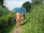 Nach dem Empfang einer schicken Erinnerungsmedaille und etlichen erfrischenden Melonenstückchen hieß es erneut: Schuhe aus und rein in den See! Auf Grund der Streckenkürzung steht bei den Gaensefurthern die Umrundung des dritten Sees nach wie vor aus. Die Teilnahme in 2014 wird damit quasi Pflichtprogramm.