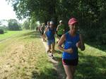 Nachdem in acht Zelten Quartier bezogen wurde, standen der Lauferei, dem Radfahren und natürlich dem grenzenlosen Badespaß im Hohennauener See nichts mehr im Wege. Den ultimativen Höhepunkt des Trainingslagers bildete der 3-Seen-Lauf am Nachmittag des zweiten Tages. Bereits beim Frühstückslauf am Morgen war den Lauffreunden klar: Heute wird es wieder sehr heiß! So gönnten sich die Sportler nach dem reichhaltigen Frühstücksbüfett im nahegelegenen Hotel ein paar faule Stunden am See. Auch der Veranstalter hatte bereits vorgesorgt und den langen Kanten über 25 Kilometer kurzerhand gesperrt. Weiterhin erleichternd kam hinzu, dass der 3-Seen-Lauf ohnehin auf jegliche Zeit- und Altersklassenwertung verzichtet. Mit der Bitte das Lauftempo den Temperaturen anzupassen, erfolgte um 15 Uhr der entgegengesetzte Start über die acht und 21 Kilometer. Während die Kurzstrecke ihre vier Kilometer bis zum Wendepunkt am bewaldeten Seeufer absolvierte, schienen die Laufschuhe auf den ersten vier Kilometern der Langdistanz am heißen Asphalt kleben zu bleiben. Der Verpflegungspunkt bei Kilometer fünf war allerhöchste Eisenbahn. Das Wasser kippte becherweise über die erhitzten Körper. Wem das nicht reichte, Schuhe aus und rein in den See! Weitere heiße fünf Kilometer auf dem Deich folgten, bevor die restlichen elf vorrangig auf angenehm kühleren Waldwegen zu absolvieren waren. Den Radfahrern als ständige Begleiter der Strecke, war sogar das Wechseln auf die Laufstrecke erlaubt. Doch alle Bode-Runner-Läufer hielten in ihrem Element tapfer durch und auch die Fahrrad-„Gäste“ klopften sich am Ende stolz auf die Schultern.