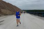 Am ersten Getränkestand noch einmal aufgetankt, lag er dann in seiner vollen Dimension vor den Läufern: Der berühmt, berüchtigte Kalimandscharo. Nun kam nicht nur für die Läufer der erste Anstieg - auch für das Förderband ging es bergauf. Der Weg auf dem hellen Abraummaterial blendete extrem. Verflixt, gab es doch beim Start bei bedecktem Himmel garkeinen Grund für den Einsatz von Sonnenbrillen.