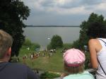 Nun waren auch die Deutschen Polizeimeisterschaften mit 110 Beamten aus 15 Bundesländern auf den Strecken. Die besten von ihnen werden zu den Europameisterschaften fahren. Für die nächsten Triathleten der Gaensefurther Sportbewegung, die sich auf die Olympische Distanz vorbereiteten, boten sie einen kleinen Vorgeschmack auf das, was da kommen sollte. Als die sieben Sportler noch gut gelaunt vom ablegenden Schiff winkten, wussten sie noch nicht, auf welches Abenteuer sie sich da einließen. Für die Zuschauer nur noch als kleiner Punkt sichtbar, entließ „Queen Arendsee“ ihre Passagiere fast am anderen Ende des Sees. „Wenn es aussieht wie beim Fische füttern, kann man davon ausgehen, dass der Start erfolgt ist.“ versicherte Jürgen Salffner, Präsident des Triathlonverbandes Sachsen-Anhalt, den halsrekelnden Zuschauern. In Mitte des Sees konnten dann die Führenden erahnt werden, als sich von der westlichen Seeseite ein mächtiges Unwetter zusammen braute. Die ersten, unter ihnen auch Martin Wille vom cash`n fun Junior Team der Salzlandsparkasse, hatten Glück und entkamen der wilden See. Dann wurde es immer dramatischer. Während der Schaufelraddampfer zur Rettung eines gekenterten Segelbootes gerufen wurde, begannen die begleitenden Rettungsboote die letzten Schwimmer aus dem Wasser zu ziehen. Für jene war der Wettkampf an dieser Stelle beendet. Alle Gaensefurther hatten Glück, erreichten das rettende Ufer und sprinteten hinauf zum höher gelegenen Wechselgarten. Die Radschuhe waren mit Wasser gefüllt, manch bereitgelegter Traubenzucker oder die am Rad gehängte Startnummer hatten dem Starkregen nicht stand gehalten. Nach ihren bescheidenen Schwimmzeiten nahmen Detlef Schäfer und Matthias Lampe die Verfolgung auf. Mit starken Rad- und Laufzeiten, bei inzwischen wieder strahlendem Sonnenschein, fanden beide in den Wettkampf zurück. Schäfer, nach seinem Ironman weiterhin in Bestform, finishte am Ende als schnellster Gaensefurther. Die als Landesmeisterschaft ausgetragene Distanz krönte er mit einem dritten Platz in seiner Altersklasse. Gefolgt von Wille, auf dem letzten Laufkilometer wegen Blasen nur mit einer Sohle beschuht, landete sogar den Landesmeistertitel. Die Salzlandsparkasse hat da eindeutig auf das richtige Pferd gesetzt! Am Ende klatschten alle Triathleten zufrieden und schmunzelnd ab: „So ein Kampf mit den Elementen hatten wir auch noch nicht!“