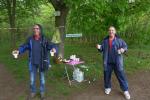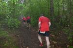 Noch mehr Abenteuer auf der Strecke hatten alle Teilnehmer über den langen Kanten. Der „König-Heinrich-Lauf“ wartete mit 14,3 Kilometern auf und führte nicht nur über weite, satte Wiesenwege. Mit zunehmender Nässe wurden gerade die derben Wurzel- und Steinpfade zur Herausforderung und mancher Sprung in das nächste Matschloch ließ sich mitunter nicht vermeiden. Doch der Regen war inzwischen so stark, dass nach dem letzten Kilometer hinunter nach Quedlinburg, jeder wieder fast sauber war. Neben der Finisher-Medaille erhielten alle Damen eine Rose zum Muttertag und Sylvia Köhn, Jana Berger und Sabine Börner krönten ihren Lauf außerdem mit einem Podestplatz in ihren Altersklassen. Hatten die Herren keinen Einfluss auf die Platzverteilung, stellte Jens-Uwe Börner jedoch beruhigend fest: „Die Berge waren ja im Vergleich zur Harzquerung lächerlich. Alle unverletzt im Ziel, gutes Tempo, ordentlich hoch und runter, Rennsteig wir kommen!“