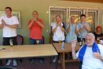 Ab 16 Uhr trafen dann auch die Tennisfrauen und Gäste von der Laufgruppe ein, die es sich bei Kaffee und Kuchen gutgehen ließen. Ein Highlight fand dann noch vor dem Abendessen statt. Norbert Krebs, Urgestein des Staßfurter Tennisvereins, Vorstandsmitglied und Kassenwart, bekam für seine langjährige ehrenamtliche Tätigkeit im Staßfurter Verein die Ehrenmedaille des Tennisverbandes (TSA) überreicht.