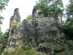 Spätestens mit dem Startschuss über 13 Kilometer waren die Gedanken an den bevorstehenden Muskelkater verschwunden und langsam reihte man sich im Tross der Laufverrückten ein. Die ersten sechs Kilometer verliefen in leichten Wellen, bevor die berüchtigte Treppe hinauf zum Gläsernen Mönch den Lauf abrupt stoppte. Quasi im Gänsemarsch zog sich die Menschenkette pustend die 230 Stufen hinauf, bis ein Mann im Mönchsgewand mit kühlem Nass und Bibel das Ende der Qual erahnen ließ. „Bitte lieber Gott, heile mich von dieser Laufkrankheit!“, konnte man vielen Gesichtern scheinbar entnehmen. Aber weit ab vom Start ging der Weg nur weiter und das zum Glück dann auch bald wieder bergab. Unaufmerksam und wie immer der Fotografie verfallen, stürzte Jens-Uwe Börner über eine Wurzel und konnte nun eine Wunde am Knie sein eigen nennen. Zu diesem Zeitpunkt gab er dann auch Schmidtschneiders Verfolgung auf, widmete sich ganz seinem Hobby und hakte den Lauf als gute Trainingsvorbereitung für den Magdeburg-Marathon ab.