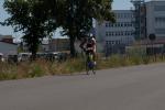 Geschwommen wurde rund um die sogenannte Spülinsel, eine kleine Insel mit Campingplatz, im Hafenbecken von Havelberg gelegen. Die Wasserqualität war trotz des Hochwassers als unbedenklich eingestuft und nicht trüber als auch in den Jahren zuvor. Auf den letzten 500 Metern, bog man dann in den eigentlichen Flusslauf der Havel ein, was ein wenig ''Rückenwind'' bedeutete. Nach guten hundert Metern Laufstrecke zum Wechselbereich, ging es aufs Rad um drei Runden von je 22 km zu absolvieren. Die Strecke ging nördlich von Havelberg über Dahlen, Nitzow um nach 11 km in Quitzöbel zu wenden. Der Wind spielte komischerweise auf der Hin- bzw. Rückstrecke eine Rolle, was die Sache gepaart mit schlechtem Fahrbahnbelag nicht einfacher machte. Das Schöne an Wendepunktstrecken ist aber, das einem seine Mitstreiter wieder entgegen kommen und man so gut einschätzen kann, wo man sich im Feld befindet. Die besten Beine hatte an diesem Tag Thomas Vetter, der die Radstrecke in 01:54:22 Stunden bewältigte, knapp gefolgt von Chris Anders, der trotz Luftproblemen bei den Witterungsbedingungen am Hinterrad von Vetter biß. Für die Meisten war dieser Turn nach rund zwei Stunden gemeistert und es hieß einen schnellen Wechsel hin zu bekommen. Ab in die Laufschuhe.