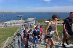 Genau 100 Teilnehmer nahmen im Anschluss die Distanz über elf Kilometer in Angriff. Da war "Angriff" wohl auch die richtige Umschreibung, denn bei Kilometer zwei verließen die Läufer den Rundweg und quälten sich eine 1,5 Kilometer lange Steigung nach oben. Die Belohnung ließ nicht lange auf sich warten, denn zum Glück ging es nach einer Schleife dort auch wieder hinunter. Die Streckenführung folgte jetzt der Kurzdistanz und vom südlichsten Punkt des Geiseltalsees gelang nun immer wieder der Blick auf die fast 200 Meter lange Seebrücke. Edgar Schmidtke, der sich noch auf den Berg gefreut hatte, beendete diesmal ohne Umwege seinen Wettkampf und war der schnellste Bode-Runner (2. Platz Altersklasse M55). Nur 80 Sekunden später überquerte Kirsten Geist (Altersklasse W55) als Gesamtsiegerin der Frauen die Ziellinie. Eine erstaunliche Laufleistung und über zwölf Minuten Abstand, ehe sich die Altersklassenkonkurrenz auf den weiteren Plätzen anschloss.