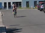 Geschwommen wurde rund um die sogenannte Spülinsel, eine kleine Insel mit Campingplatz, im Hafenbecken von Havelberg gelegen. Die Wasserqualität war trotz des Hochwassers als unbedenklich eingestuft und nicht trüber als auch in den Jahren zuvor. Auf den letzten 500 Metern, bog man dann in den eigentlichen Flusslauf der Havel ein, was ein wenig ''Rückenwind'' bedeutete. Nach guten hundert Metern Laufstrecke zum Wechselbereich, ging es aufs Rad um drei Runden von je 22 km zu absolvieren. Die Strecke ging nördlich von Havelberg über Dahlen, Nitzow um nach 11 km in Quitzöbel zu wenden. Der Wind spielte komischerweise auf der Hin- bzw. Rückstrecke eine Rolle, was die Sache gepaart mit schlechtem Fahrbahnbelag nicht einfacher machte. Das Schöne an Wendepunktstrecken ist aber, das einem seine Mitstreiter wieder entgegen kommen und man so gut einschätzen kann, wo man sich im Feld befindet. Die besten Beine hatte an diesem Tag Thomas Vetter, der die Radstrecke in 01:54:22 Stunden bewältigte, knapp gefolgt von Chris Anders, der trotz Luftproblemen bei den Witterungsbedingungen am Hinterrad von Vetter biß. Für die Meisten war dieser Turn nach rund zwei Stunden gemeistert und es hieß einen schnellen Wechsel hin zu bekommen. Ab in die Laufschuhe.