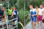 Nach einem Sprung in das kühle Nass sortierten sich die Schwimmer an der gedachten Startlinie. Ohne Neoprenanzug und mitten im See ausgesetzt, galt es nun das 1,5 Kilometer entfernte Ufer zu erreichen. Von den drei Startern der Gaensefurther Sportbewegung entkam Janko Schlenker als erster dem nassen Element. Trotz schlechterer Radzeit konnte er seinen Vorsprung vor Thomas Vetter über die Ziellinie retten. Vetter finishte nur 10 Sekunden hinter Schlenker. Als dritter im Bunde, beendete nach 2:44:10 Stunden Christian Anders ebenfalls seine olympische Distanz. Neben der Schwimmstrecke lagen 40 Kilometer Rad und eine Zehn-Kilometer-Laufrunde um den See hinter ihm.