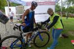 Erst um 13.00 Uhr wurde es dann auch für die 133 Starter über die Jedermann-Distanz ernst. Für den Newcomer Thomas Mohr aus Löderburg, sollte der Triathlon in Arendsee ein unvergessenes Erlebnis werden. Hier war Sabine Börner in ihrem Element, denn nichts liegt ihr mehr, als Debütanten vom Sport zu begeistern. Herrlich unwissend, nahm Mohr dankend jeden Hinweis an, zumal Zeitvorgaben keine Rolle spielten und lediglich das Überqueren der Ziellinie als Maßstab galt. Ein letztes Mal brachte sich die „Queen Arendsee“ in Position und als Mohr seine Brille nach dem Sprung ins Wasser wieder auf der Nase platziert hatte, ging es auch schon los. Die Wellen hielten sich zurück und auch die Brille hielt bis zum anvisierten Ufer. Jens-Uwe Börner wechselte nach dem Schwimmen 15 Sekunden eher auf das Rad als Sabine – ein Schock, dass gab es im Triathlonkampf der Eheleute noch nie! Auf der 20 Kilometer langen Radstrecke begegnete man dem Debütanten Mohr dann zwei Mal. Das schwere Mountainbike erinnerte Börner an seine ersten Triathlon-Starts und die mitgenommene Capri-Sonne ließ Sabine immer noch leicht schmunzeln. Beruhigend, dass sich Mohr für die anstehende Fünf-Kilometer-Laufeinheit noch ein paar Sahnebonbons als Energiereserve bereit gelegt hatte. Beide Börners hatten es fast geschafft, da wechselte auch Mohr auf die Laufstrecke. Während die Wartenden im Zielbereich den rührenden Heiratsantrag eines Triathleten-Pärchens verfolgen konnten, war für Mohr Durchhalten angesagt. Und wie er durchhielt! Gepuscht durch die Sprecheransage und dem Applaus der vielen Zuschauer, legte Mohr auf der langen Zielgeraden einen sehenswerten Schlussspurt hin. Da wurden Reserven mobilisiert, die zweifellos ausbaufähig sind! Ein überglücklicher Thomas Mohr feierte seinen ersten Triathlon und die Sportler der Gaensefurther Sportbewegung feierten gerührt mit. Trotz Aussicht auf einen heftigen Muskelkater vereinbarten die Finisher eine Neuauflage im nächsten Jahr.