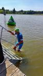 Die jüngsten starteten über Ministrecken und für Anfänger gab es weitere Kurzstrecken im Angebot. Fast 300 SwimRunner liefen die Sprint Distanz über 10km und gingen 2km ins warme Nass und über Halbmarathonstrecke trauten sich noch etwa 80 Teilnehmer. Über die längste Distanz wurde in diesem Jahr die WM ausgetragen. Bei den Gaensefurther Triathleten stellte sich Steffen Schöler dieser Herausforderung. Nach holperigem Schwimmstart, bei dem er seinen Laufgürtel fast verloren hätte, lief es wie am Schnürchen für ihn. Die ca.18km Laufen und fast 4km Schwimmen bei etwa 30 °C gingen ganz locker durch. Im Ziel wurde er von seinen Teamkollegen nach 2:55h mit großem Applaus in Empfang genommen. Er belegte in der Altersklasse Master (der über 40jährigen) Platz 15. Olaf Moch ging über die Sprintdistanz ins Rennen und finishte nach 1:39h und Platz26. Seine Strategie, mit zwei Schwimmhilfen in den Wettkampf zu gehen, ging auf. Die Schwimmhilfen dürfen nämlich frei gewählt werden. Man muss nur mit allen Dingen wieder ins Ziel kommen, womit man gestartet ist.