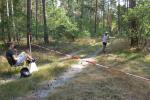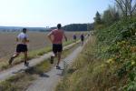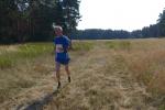 Was den Untergrund betraf, hatte die Strecke alles zu bieten und verdiente zweifelsohne das Prädikat „Cross“. Betonplatten führten über die erste Anhöhe, bevor eine Gabelung die Kurzstrecke über drei Kilometer bald von der Sechs-Kilometer-Distanz trennte. Auf weichen Waldwegen musste man lediglich den zahlreichen Kienäpfeln ausweichen. Ganz nach dem Geschmack für Barfußläufer, wechselten sich holprige Stoppelwiesen mit tiefen Sandwegen ab, bevor auch schon wieder eine weitere Anhöhe zu erklimmen war. Ehe es aus dem Wald hinaus auf eine Lichtung ging, versorgte ein Verpflegungsstand mit Getränken. Der Hinweis, die leeren Becher wieder in die bereitgestellten Abfallbehälter zu werfen, brachte manchen Läufer aus dem Tritt, denn oft verfehlte die Arm-Motorik das enge Ziel. Das muss vor den nächsten Wettkämpfen unbedingt geübt und weiter verinnerlicht werden! Die große Lichtung erlaubte eine Ausschau auf das Renngeschehen, machte Abstände sichtbar und offerierte eine weitere Anhöhe, die zu bewältigen war. Aber es ging dann auch mal bergab, bevor ein Streckenposten bei Kilometer 5,3 die letzte Steigung ankündigte. Die geschafft, ging es für alle Sechs-Kilometer-Läufer rasant bergab in das wohlverdiente Ziel.