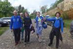Noch mehr Abenteuer auf der Strecke hatten alle Teilnehmer über den langen Kanten. Der „König-Heinrich-Lauf“ wartete mit 14,3 Kilometern auf und führte nicht nur über weite, satte Wiesenwege. Mit zunehmender Nässe wurden gerade die derben Wurzel- und Steinpfade zur Herausforderung und mancher Sprung in das nächste Matschloch ließ sich mitunter nicht vermeiden. Doch der Regen war inzwischen so stark, dass nach dem letzten Kilometer hinunter nach Quedlinburg, jeder wieder fast sauber war. Neben der Finisher-Medaille erhielten alle Damen eine Rose zum Muttertag und Sylvia Köhn, Jana Berger und Sabine Börner krönten ihren Lauf außerdem mit einem Podestplatz in ihren Altersklassen. Hatten die Herren keinen Einfluss auf die Platzverteilung, stellte Jens-Uwe Börner jedoch beruhigend fest: „Die Berge waren ja im Vergleich zur Harzquerung lächerlich. Alle unverletzt im Ziel, gutes Tempo, ordentlich hoch und runter, Rennsteig wir kommen!“