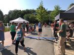 Ausgeruht und komplett auf ihre Heimstrecke konzentriert, finishte Petra Becker die Neun-Kilometer-Distanz auf Platz drei in ihrer Altersklasse W50. Sandra Zelmer lief nach einer kurzen Auszeit sogar auf Platz eins in der W30, gefolgt von Janine Wuwer (Platz zwei W35). Kathleen Mahler siegte in der W40 vor Nancy Bothe, die sich im Ziel wahnsinnig über ihre schnelle Zielzeit freute, und in der W50 standen auf dem Podest ausnahmslos Gaensefurther Füße. In der männlichen Jugend U14 lief Marc Krüger ein beherztes Rennen über lange neun Kilometer und brachte die Strecke noch unter 53 Minuten über die Ziellinie. Hautnah konnte er den Zieleinlauf der ersten Läufer über die 13-Kilometer-Distanz mitverfolgen. Scheinbar fliegend überholte Triathlet Maik Löwe, gefolgt von Neuzugang Rinaldo Schielke, der trotz abfallender Strecke und Rückenwind den Vorauseilenden nicht mehr einholen konnte. Keine Chance, schmunzelte Löwe im Ziel, ist er doch in der Form seines Lebens: „Barcelona wartet in vier Wochen auf mich und Ziel ist die Qualifikation für den Ironman Hawaii 2020!“