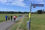 Auch Sandra Homann konnte erneut ihre gute Form vom Parchener Fiener-Crosslauf abrufen und siegte in Friedrichsbrunn in der Altersklasse W40. Im Zehn-Sekunden-Takt wurden die Läufer in Zehnerteams auf die Strecke geschickt, so dass sich im Startbereich keine Menschenansammlung bilden konnte. Da die Läufer nach dem Alphabet sortiert waren, gehörten Olaf Bothe, Jens-Uwe und Sabine Börner gleich zum ersten Starterfeld. „Oh Nein, ihr werdet mich alle jagen!“, machte sich bei Börner ein mulmiges Gefühl breit. Doch ziemlich schnell hatten alle flinken Beine die Genussläufer überholt. Auf der herrlich waldreichen Strecke ging es über zwei Fünf-Kilometer-Runden ordentlich hoch und runter. „Durchlaufen, nur nicht gehen!“, war das ausgemachte Ziel von Börner, was Atmung und Kreislauf gehörig ankurbelte. Böse nur, dass das Ziel bei Kilometer vier und acht bereits zum Greifen nahe war. Doch es ging noch einmal für fast zwei Kilometer in den Wald hinein und zwei Anhöhen wollten auch noch von den Läufern erklommen werden. Das gelang vielen gut und die langen Schatten deuteten den Vorauseilenden die nahende Bedrohung rechtzeitig an. Lag es nun an den tiefen Sonnenstrahlen die blendeten, an einem verpassten Wegweiser oder ganz einfach daran, dass Edgar Schmidtke keinen Läufer mehr vor sich hatte? Egal, auf jeden Fall ging es auf der ersten Runde nicht hinein nach Friedrichsbrunn! Schmidtke: „Es waren vielleicht 700 Meter die ich falsch gelaufen bin!“, resümierte der Bode-Runner. Spätestens auf dem Podest entspannte sich sein Gesicht aber wieder, denn trotz des Abstechers feierte der Finisher den zweiten Platz in der Altersklasse M55. „Auf die sechs Minuten Abstand zu Platz eins wäre ich nicht mehr rangelaufen!“, ist sich Schmidtke ziemlich sicher. Als dann noch Jens-Uwe Börner für den dritten Platz seinen Fotoapparat in fremde Hände geben musste, freute sich der Veranstalter WSV Grün-Weiß Friedrichsbrunn über den Jubel der Bode-Runners, die ihren beiden Lauffreunden lautstark Applaus spendeten. Schnell nahm er sein liebstes Gerät wieder an sich, sprintete doch Renate Liedtke nun auf das oberste Podest. Sie war zwar die Einzige in ihrer Altersklasse W65, hatte aber an diesem Tag alle geschlagen, die auf ihrer Couch liegen geblieben waren.