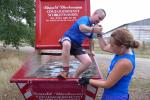 Bei der Genthiner Matschwolke waren auf jeden Fall ganze sieben Matschgänse auf einem Streich, oder besser geschrieben, in einem Team dabei. Die fünfte Auflage hatte ihren Start zum ersten Mal in Parchen. Hier sind die Bedingungen einfach noch besser, meint Mitorganisator Falk Heidel und filmte die Gaense, wie sie sich treppauf, treppab durch das altehrwürdige Parchener Schloss schoben. Mancher Streckenabschnitt war den Bode-Runners bereits vom Fiener Cross bekannt, doch da mussten sie nicht durch den hüfttiefen Mühlgraben oder zähen Morast waten, Fässer von A nach B transportieren oder auf einer Slag-Line balancieren. Die schnellsten Beine hatte man nach vorn beordert, was durchaus Sinn machte, belegten die ersten vier Matschgänse doch den zweiten Rang in der Teamwertung. Nach 30 verrückten Hindernissen und zwölf langen Kilometern, waren dann alle Bode-Runners wohlbehalten wieder im Ziel. Ein letzter Tauchgang, um sich eine der begehrten Finishermedaillen vom Grund des Containers zu fischen, gehörte inzwischen genauso zum Ritual, wie das strahlend weiße Handtuch für alle, die am Ende aus dem Dreckwasser auftauchten.