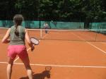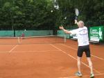 Hoch interessiert und motiviert fanden sich also Läufer und Triathleten auf den vier neu rekonstruierten Tennisplätzen ein. Vorerst bestaunte man die ebenfalls frisch sanierten Vereinsräume, waren doch die Plätze aufgrund heftiger Regenfälle noch mit großen Pfützen gespickt. Fleißige Tennisspieler waren aber bereits dabei, mit Riesenbesen die Plätze wieder bespielbar zu machen. Die Grills arbeiten dann auch bald auf Hochtouren und die Bierchen und lecker mitgebrachten Salate stimmten wohl sogar den Wettergott gnädig. Unter kompetenten Anleitungen wurde nun dem einen oder anderen Runner wohl zum ersten Mal Vor- und Rückhand erklärt. Nach ersten Aufschlagübungen und nahen Netzschlägen der Anfänger, lieferten sich Alleskönner und Profils bereits ordentliche Schmetterbälle, gekonnte Passierschläge oder Stoppbälle. Bis zum Abend hielt das rege Treiben auf den Plätzen an.