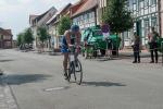 In aller Frühe bereiteten sich am Folgetag die ersten Starter der Gaensefurther Sportbewegung auf die Sprintdistanz vor. Pünktlich um neun Uhr legte der Schaufelraddampfer „Queen Arendsee“ ab. Nach 750 „Seemetern“ führte nur ein Sprung vom Schiff an die gedachte Startlinie zur ersten Disziplin. „Mal sehen ob das noch geht?“ So nahm Annett Lampe ihren ersten Triathlon in diesem Jahr in Angriff und setzte sich bereits beim Schwimmen stark von ihren Verfolgerinnen ab. Als Sprint-Gäste mit dabei, Bode-Runners Jens-Uwe und Sabine Börner, denn die Anmeldung zum Jedermann-Wettkampf war bereits ausgebucht. Wie immer hatten sie ihre Mühe mit dem nassen Element und gingen fast zeitgleich auf die 20 Kilometer Radstrecke. Nach zehn Kilometern ratterten die Rennräder publikumsfreundlich über das Marktplatzpflaster, bevor die zweite Runde anstand. Noch fünf Kilometer laufen, dann war es vollbracht. Und wie es noch ging! Annett Lampe feierte neben ihrem Altersklassensieg sogar den zweiten Platz in der Gesamtwertung der Frauen. Und Sprint-Gast Sabine Börner kann ihren ersten Platz in der Altersklasse Senn2 wohl immer noch nicht richtig glauben.