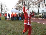 Mit der Pistole in der Hand begab sich der Nikolaus zum Startbereich, wo er schon sehnsüchtig von den Läufern erwartet wurde. Mit einem lauten Knall schickte er die Teilnehmer in die Spur.