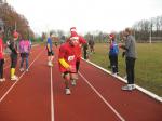 Bereits um 9. 30 Uhr gab er den Startschuss für die Vorschulkinder, die allein 200 Meter am schnellsten absolvieren mussten. Danach wurden die Sechs- bis Achtjährigen, Neun- bis Zehnjährigen sowie die Teilnehmer über elf Jahre mit einem Partner ins Rennen geschickt. Jedes Paar, ausgestattet mit einer identischen Startnummer, lief abwechselnd innerhalb eines bestimmten Zeitfensters so viele Runden wie es schaffte. Das Moderatoren-Duo Florian Börner und Annegret Wille von der Gaensefurther Sportbewegung sorgte für gute Stimmung von den Rängen. Beide führten die Siegerehrungen durch. Auch der Nikolaus stattete den beiden einen Besuch ab. Etwas stressiger ging es bei Stefan Rösler, der für die Computerauswertung zuständig war, zu. Im Startbereich war das Zelt platziert, in dem es den Damen nicht nur durch den Heizlüfter warm wurde. Ihnen wurde die Startnummer zugerufen und daraufhin gaben sie die Rundenzahlen in den PC ein. Zur Höchstform liefen auch Thomas Mota und Christiane Koch von der TSG Gutsmuths Quedlinburg auf, die nach einer Stunde, die größte Distanz zurückgelegt hatten. Sie liefen 16 218 Meter.