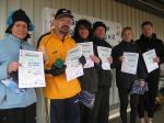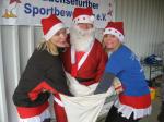 Als in einer der Anfangsrunden ein Läufer aus Hettstedt verletzt aufgeben musste, waren Vereinskameraden und Organisatoren sehr besorgt. Sofort verarzteten Ersthelfer Florian Börner und Mutter Sabine den umgeknickten Fuß mit kalter Kompresse, Bandage und Salbe. Da die genaue Diagnose nur ein Mediziner stellen konnte, hängte Christoph Lampe kurzerhand sein Weihnachtsmannkostüm an den Nagel und brachte den Pechvogel ins Krankenhaus. Sein Partner lief unterdessen fleißig Runde um Runde, übernahm den Part seines Teamkollegen mit. Nach Ende der Laufzeit dann die Entwarnung. Der junge Mann erschien mit großer Bandage im Stadion, erleichtert über die ärztliche Feststellung, dass nichts gebrochen oder verstaucht ist. Und dann das Koriose: Er kam genau rechtzeitig zur Siegerehrung, bei der er gemeinsam mit seinem Partner freudestrahlend die Urkunde für den 2. Platz in Empfang nehmen konnte.