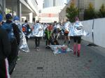 Nein, krank sind sie noch nicht! In Plastiktüten gegen die Kälte gehüllt, bibbern sie ihrem Start entgegen. Jörg Schäper, Lutz Klauß und Sabine Börner zählen in der nächsten Welle von 10 rückwärts: 9, 8, 7 … 1 – Start! Noch mehr Gänsehaut, denn nun setzten sich weitere 5.000 Läufer in Bewegung. Tolle Erfindung diese Wellenmethode! Von Anfang an haben die Sportler ausreichend Platz. Nach dem ersten Kilometer ein kritischer Blick auf die Stoppuhr – und Erleichterung, genau im Zeitplan. „Jetzt können wir endlich laufen, jetzt ist alles gut!“ Es läuft gut, zu gut, Runner`s High, ein euphorisches Hochgefühl welches die Beine immer schneller werden lässt. Mit einer irren Durchgangszeit von 01:39 Stunden passieren Meier und Börner die Halbmarathondistanz. Zeit Meier ziehen zu lassen, das Foto hatte Börner bereits im Kasten. Bei Schäper lief auch alles super, Klauß und Sabine Börner waren noch bis Kilometer elf zusammen. „Lauf dein Ding!“ schickt Sabine ihn auf die Reise „Ich schalte einen Gang runter!“ Bald überholt auch Schäper. Gut gelaunt und locker verschwindet er bis zur nächsten Verpflegungsstelle im Läufermeer. Sabine braucht keine Verpflegungsstelle. Vollgehängt mit Trinkflaschen wird beim Laufen getrunken. Reine Kopfsache, den Rhythmus nicht unterbrechen, vier Stunden durchlaufen bis zum Ziel! Während dessen hat sich Börner von den ersten 25 Kilometern langsam wieder erholt. Ob die Staffelläufer zu sehen sind? Renate Liedtke als Startläufer wurde mit der letzten Welle auf die Reise geschickt. Nach 12 Kilometern übergab sie ihren Chip an Claudia Meier, welche für sieben Kilometer die Staßfurter Läufer vertrat. Rein in den Wechselgarten und Übergabe an Sylvia Köhn. Sie muss sich die Kräfte genau einteilen, denn auf Grund des Ausfalls eines Läufers wird sie zwei Etappen bewältigen müssen. Kein Problem für Köhn, hat sie doch die fehlenden 23 Kilometer in letzter Zeit bereits öfters absolviert.