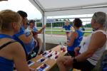 Allzu lange waren die Bode-Runners der Gaensefurther Sportbewegung jedoch nicht am Feiern, stand doch am nächsten Tag der Rolandlauf in Haldensleben auf dem Programm. Geburtstagskind Lotta beschenkte sich beim Zwei-Kilometer-Run mit einem dritten Platz, ihre große Schwester Emily lief wieder einmal auf Platz eins in ihrer Altersklasse. Dabei stellte sie bereits tags zuvor in Halberstadt beim Sichtungstest der Nachwuchssportler eine neue persönliche Bestzeit über 800 Meter auf (Platz zwei in der Kinder W8 in 3:07,37). Die Großen machten es den Kleinen nach und landeten bei der Siegerehrung ebenfalls Podestplätze in vielen Altersklassen. Das große Waldstadion war die perfekte Kulisse für die über 200 Starter auf den sechs und zwölf Kilometern. Nach anderthalb Runden ging es noch einmal außen um das Stadion herum, so dass sich auf dem anschließenden Waldweg das große Teilnehmerfeld schon gut auseinandergezogen hatte. Auf dem Kampf um die Plätze und Wertungspunkte schenkten sich die Spitzenläufer nichts. Wieder einmal eine starke Kirsten Geist, die als einziger Bode-Runner über die Zwölf-Kilometer-Distanz unter einer Stunde blieb. Im Ranking um die Gesamtplätze sicherte sie sich Bronze. Nach längerer Auszeit war auch Renate Liedtke wieder mit dabei, die nun in der Altersklasse W70 in Haldensleben souverän den dritten Platz erlief. Das glücklichste Gesicht beim Rolandlauf, dem neunten Wertungslauf im Novo Nordisk Landescup, hatte aber eindeutig Anke Delius. Für zwölf Kilometer Laufarbeit durfte sie in ihrer Altersklasse W45 auf die dritte Podeststufe steigen. Der lautstarke Jubel der Vereinskameraden war ihr gewiss und belohnte für die vielen fleißigen Trainingskilometer der letzten Monate.