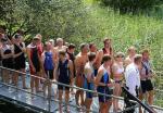 Nun waren auch die Deutschen Polizeimeisterschaften mit 110 Beamten aus 15 Bundesländern auf den Strecken. Die besten von ihnen werden zu den Europameisterschaften fahren. Für die nächsten Triathleten der Gaensefurther Sportbewegung, die sich auf die Olympische Distanz vorbereiteten, boten sie einen kleinen Vorgeschmack auf das, was da kommen sollte. Als die sieben Sportler noch gut gelaunt vom ablegenden Schiff winkten, wussten sie noch nicht, auf welches Abenteuer sie sich da einließen. Für die Zuschauer nur noch als kleiner Punkt sichtbar, entließ „Queen Arendsee“ ihre Passagiere fast am anderen Ende des Sees. „Wenn es aussieht wie beim Fische füttern, kann man davon ausgehen, dass der Start erfolgt ist.“ versicherte Jürgen Salffner, Präsident des Triathlonverbandes Sachsen-Anhalt, den halsrekelnden Zuschauern. In Mitte des Sees konnten dann die Führenden erahnt werden, als sich von der westlichen Seeseite ein mächtiges Unwetter zusammen braute. Die ersten, unter ihnen auch Martin Wille vom cash`n fun Junior Team der Salzlandsparkasse, hatten Glück und entkamen der wilden See. Dann wurde es immer dramatischer. Während der Schaufelraddampfer zur Rettung eines gekenterten Segelbootes gerufen wurde, begannen die begleitenden Rettungsboote die letzten Schwimmer aus dem Wasser zu ziehen. Für jene war der Wettkampf an dieser Stelle beendet. Alle Gaensefurther hatten Glück, erreichten das rettende Ufer und sprinteten hinauf zum höher gelegenen Wechselgarten. Die Radschuhe waren mit Wasser gefüllt, manch bereitgelegter Traubenzucker oder die am Rad gehängte Startnummer hatten dem Starkregen nicht stand gehalten. Nach ihren bescheidenen Schwimmzeiten nahmen Detlef Schäfer und Matthias Lampe die Verfolgung auf. Mit starken Rad- und Laufzeiten, bei inzwischen wieder strahlendem Sonnenschein, fanden beide in den Wettkampf zurück. Schäfer, nach seinem Ironman weiterhin in Bestform, finishte am Ende als schnellster Gaensefurther. Die als Landesmeisterschaft ausgetragene Distanz krönte er mit einem dritten Platz in seiner Altersklasse. Gefolgt von Wille, auf dem letzten Laufkilometer wegen Blasen nur mit einer Sohle beschuht, landete sogar den Landesmeistertitel. Die Salzlandsparkasse hat da eindeutig auf das richtige Pferd gesetzt! Am Ende klatschten alle Triathleten zufrieden und schmunzelnd ab: „So ein Kampf mit den Elementen hatten wir auch noch nicht!“