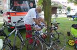 Erst um 13.00 Uhr wurde es dann auch für die 133 Starter über die Jedermann-Distanz ernst. Für den Newcomer Thomas Mohr aus Löderburg, sollte der Triathlon in Arendsee ein unvergessenes Erlebnis werden. Hier war Sabine Börner in ihrem Element, denn nichts liegt ihr mehr, als Debütanten vom Sport zu begeistern. Herrlich unwissend, nahm Mohr dankend jeden Hinweis an, zumal Zeitvorgaben keine Rolle spielten und lediglich das Überqueren der Ziellinie als Maßstab galt. Ein letztes Mal brachte sich die „Queen Arendsee“ in Position und als Mohr seine Brille nach dem Sprung ins Wasser wieder auf der Nase platziert hatte, ging es auch schon los. Die Wellen hielten sich zurück und auch die Brille hielt bis zum anvisierten Ufer. Jens-Uwe Börner wechselte nach dem Schwimmen 15 Sekunden eher auf das Rad als Sabine – ein Schock, dass gab es im Triathlonkampf der Eheleute noch nie! Auf der 20 Kilometer langen Radstrecke begegnete man dem Debütanten Mohr dann zwei Mal. Das schwere Mountainbike erinnerte Börner an seine ersten Triathlon-Starts und die mitgenommene Capri-Sonne ließ Sabine immer noch leicht schmunzeln. Beruhigend, dass sich Mohr für die anstehende Fünf-Kilometer-Laufeinheit noch ein paar Sahnebonbons als Energiereserve bereit gelegt hatte. Beide Börners hatten es fast geschafft, da wechselte auch Mohr auf die Laufstrecke. Während die Wartenden im Zielbereich den rührenden Heiratsantrag eines Triathleten-Pärchens verfolgen konnten, war für Mohr Durchhalten angesagt. Und wie er durchhielt! Gepuscht durch die Sprecheransage und dem Applaus der vielen Zuschauer, legte Mohr auf der langen Zielgeraden einen sehenswerten Schlussspurt hin. Da wurden Reserven mobilisiert, die zweifellos ausbaufähig sind! Ein überglücklicher Thomas Mohr feierte seinen ersten Triathlon und die Sportler der Gaensefurther Sportbewegung feierten gerührt mit. Trotz Aussicht auf einen heftigen Muskelkater vereinbarten die Finisher eine Neuauflage im nächsten Jahr.