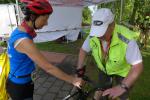 In der langen Warteschlange zur Abholung der Startunterlagen ging der Blick oft nach oben. Dicke Regenwolken thronten am Himmel und entleerten sich immer wieder in kleinen Huschen über den Arendsee. Die Teilnehmer der olympischen Distanz hatten den Kampf mit den Elementen aus dem Vorjahr noch gut in Erinnerung. Haarscharf entkamen sie damals dem tobenden See, was für einige bereits nach der Schwimmdistanz das unwiderrufliche Aus bedeutete. So bestand der Veranstalter in diesem Jahr auch wieder auf die Badekappenpflicht. Nur mit diesem auffallenden Utensil ausgestattet, war der Zutritt zum Schaufelraddampfer „Queen Arendsee“ freigegeben. Promi Antje Buschschulte begleitete als Zuschauerin und zum Daumen drücken ihren Ehemann Helge Meeuw auf der „Queen“. Während der Fahrt zum Start, lauschten die Teilnehmer angespannt den letzten Hinweisen der Wettkampfleitung. Dann ging alles ganz schnell.