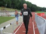 Fünf weitere Gaensefurther gingen am schönen Meisdorfer Schloss an den Start. Der Veranstalter registrierte mit 102 Teilnehmern über diese Distanz einen neuen Teilnehmerrekord. Alle samt sollten dann auf den ersten Kilometern gleich mal ordentlich schwitzen, denn es war nicht nur drückend feucht, es ging auch stetig bergauf. Keine Schwäche zeigen, schließlich gingen in Stiege bereits um sieben Uhr die Ultraläufer über 69 Kilometer an den Start und ab Alexisbad kämpften sich Sportler über die Marathondistanz bis ins Ziel nach Quedlinburg. Im Schatten der Wälder erreichte man Ballenstedt. Vorbei am Schloss blieb der idyllisch angelegte Schlossgarten leider links liegen. Dafür dann aber gute Sicht zur Roseburg und dem Harzer Wahrzeichen, dem weit entfernten Brocken. Bergauf, bergab erreichten die Läufer den Osterteich. Neidisch schweifte der Blick zu den Badenden. Ein Wegweiser verriet den nächsten Anstieg: Osterhöhe. Spätestens oben angekommen, wünschten sich die Flachlandläufer ihre lässigen Trainingsrunden in der Staßfurter Horst zurück. Der Abstieg nach Bad Suderode versprach Erholung. Noch einmal am Verpflegungspunkt gestärkt, ging es nun vorbei an der Bückemühle in Richtung Quedlinburg. Die Sonne brannte erbarmungslos, kein schattenspendender Baum, jede Anhöhe wurde nun zur Tortur. Auf der endlos erscheinenden Straße nach Quedlinburg flimmerte am Horizont eine Tankstelle in der Mittagssonne. Mühsam kam der Tross voran und obwohl die Straße vollkommen eben war, sah man immer mehr Sportler vom Lauf in den Fußmarsch wechseln. Nur gut, vor der Tankstelle kommt noch mal ein Getränkestand! Waren dann aber doch Kartoffeln, das Kilo für 2,00 € – so muss es einem bei einer Fatamorgana ergehen. Das Ortsschild war passiert, der Stadionsprecher war schon zu hören. Nur beim letzten Schlössermarathon in Potsdam erlebten die Bode-Runners wohl eine ähnlich quälende Sportplatzrunde. Trinken, Schatten, wieder trinken, Schatten. Respektvoll verfolgte man das Einlaufen der ersten Marathonläufer. Neben Schölers freute sich auch Sylvia Köhn über ihren ersten Platz in der Altersklasse der Frauen. Gut über die Anhöhen gekommen, war sie sichtlich stolz, diese lange Distanz erstmals ins Ziel gebracht zu haben. Die kommende Trainingswoche widmen die Bode-Runners ganz der Regeneration. Schwimmen und Radfahren im gemütlichen Tempo stehen auf dem Plan. Ob sie den Plan wohl einhalten werden?