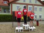Fabienne Sämisch (w9) stellte sich der Konkurrenz im Dreikampf und im 600m Lauf. Für ihre Ergebnisse von 9,16s(50m)/2,96m(weit)/ 21,50m(Ball) im Dreikampf standen 874 Punkte (PB) und Rang 6 am Ende zu Buche. Besonders machte sie aber im 600m Lauf auf sich aufmerksam. Am Anfang unter den Führenden, musste sie das Tempo wegen Schmerzen im Oberschenkel reduzieren und fiel zurück. Auf der Zielgeraden biss das zierliche Mädchen dann aber die Zähne zusammen, überholte kurz vor der Ziellinie noch eine Konkurrentin und kam mit PB von 2:27,13 Minuten ins Ziel. Auch wenn sie die Sympathien der Zuschauer gewonnen hatte, für einen Podestplatz reichte es leider nicht.