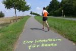 „Die Dusche danach“ ist für viele Volksläufer das allerbeste am Wettkampf überhaupt. Neben Dreck und Schweiß fällt auch alle Anspannung ab und die Freude über das Geschaffte signalisiert der Psyche grenzenlose Zufriedenheit. „Au Weia!“ schmunzelte eine Läuferin in Sicht auf ihre übergroßen Badelatschen. „Die haben wir in der Hitze des Gefechtes wohl vertauscht!“ Der Gatte im Nebenraum dürfte die größeren Schwierigkeiten gehabt haben.