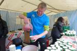 Die beiden Gaensefurther im Ziel hatten indes genug Zeit zum Duschen und warteten zusammen mit dem mitgereisten Fanblock auf die Ankunft der ausstehenden Ultraläufer. Aber auch nach acht Stunden suchte man vergebens nach den blauen Shirts, hätte man zumindest Jens-Uwe Börner längst zurück erwartet (Zielzeit 2013: 07:47:37 Stunden). Umso überraschter bejubelten die Freunde Katrin Winkler-Hindricks, welche nach starken 08:42:32 Stunden ihren allerersten Ultramarathon ins Ziel brachte. Nur sechs Minuten später und damit eine dreiviertel Stunde schneller als im vergangenen Jahr, war mit Sabine Börner auch die zweite Bode-Runners-Frau im Ziel. Bevor man sich dann langsam Sorgen machte, wurde das Männer-Trio zum Glück in der Ferne ausgemacht. Geschafft aber rundum zufrieden, hatten sie sich gemeinsam durchgebissen. Nicht zuletzt auch durch die üppig beladenen Verpflegungsstände. 09:16:00 Stunden Laufarbeit Nonstop hatten die Beine hinter sich. - Ein Ergebnis, dass man natürlich unmöglich so stehen lassen kann! Eine Neuauflage muss her, vielleicht in zwei Jahren. - Dann aber mit dosiertem Training und ohne Würstchen und Schmalzstullen auf dem Weg ins Ziel?