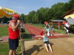 Celine Ladehoff (w13) hatte sich für Kugelstoß und 800m Lauf entschieden. Dass die Kugel bei 7,18m landete, löste bei ihr große Freude aus, zumal sie damit auch eine neue PB vorweisen konnte. Der 800m Lauf fiel dann wie auch bei den anderen Athleten der Hitze zum Opfer.