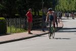 Geschwommen wurde rund um die sogenannte Spülinsel, eine kleine Insel mit Campingplatz, im Hafenbecken von Havelberg gelegen. Die Wasserqualität war trotz des Hochwassers als unbedenklich eingestuft und nicht trüber als auch in den Jahren zuvor. Auf den letzten 500 Metern, bog man dann in den eigentlichen Flusslauf der Havel ein, was ein wenig ''Rückenwind'' bedeutete. Nach guten hundert Metern Laufstrecke zum Wechselbereich, ging es aufs Rad um drei Runden von je 22 km zu absolvieren. Die Strecke ging nördlich von Havelberg über Dahlen, Nitzow um nach 11 km in Quitzöbel zu wenden. Der Wind spielte komischerweise auf der Hin- bzw. Rückstrecke eine Rolle, was die Sache gepaart mit schlechtem Fahrbahnbelag nicht einfacher machte. Das Schöne an Wendepunktstrecken ist aber, das einem seine Mitstreiter wieder entgegen kommen und man so gut einschätzen kann, wo man sich im Feld befindet. Die besten Beine hatte an diesem Tag Thomas Vetter, der die Radstrecke in 01:54:22 Stunden bewältigte, knapp gefolgt von Chris Anders, der trotz Luftproblemen bei den Witterungsbedingungen am Hinterrad von Vetter biß. Für die Meisten war dieser Turn nach rund zwei Stunden gemeistert und es hieß einen schnellen Wechsel hin zu bekommen. Ab in die Laufschuhe.