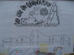 Spätestens mit dem Startschuss über 13 Kilometer waren die Gedanken an den bevorstehenden Muskelkater verschwunden und langsam reihte man sich im Tross der Laufverrückten ein. Die ersten sechs Kilometer verliefen in leichten Wellen, bevor die berüchtigte Treppe hinauf zum Gläsernen Mönch den Lauf abrupt stoppte. Quasi im Gänsemarsch zog sich die Menschenkette pustend die 230 Stufen hinauf, bis ein Mann im Mönchsgewand mit kühlem Nass und Bibel das Ende der Qual erahnen ließ. „Bitte lieber Gott, heile mich von dieser Laufkrankheit!“, konnte man vielen Gesichtern scheinbar entnehmen. Aber weit ab vom Start ging der Weg nur weiter und das zum Glück dann auch bald wieder bergab. Unaufmerksam und wie immer der Fotografie verfallen, stürzte Jens-Uwe Börner über eine Wurzel und konnte nun eine Wunde am Knie sein eigen nennen. Zu diesem Zeitpunkt gab er dann auch Schmidtschneiders Verfolgung auf, widmete sich ganz seinem Hobby und hakte den Lauf als gute Trainingsvorbereitung für den Magdeburg-Marathon ab.