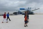 Mit dem Salutschuss der Schricker Schützen begann die originelle Führung durch das Betriebsgelände zunächst am Zielitzer Schwimmbad. Vorbei an der Straußenfarm „Glück Auf“, registrierte man die emsigen Vorbereitungen auf den angrenzenden Festwiesen. Spätestens nach dem Passieren des Pförtnerhäuschens offenbarten sich die gigantischen Betriebsanlagen für die aufwendige Kaliproduktion. „Immer schön dem Förderband folgen!“, lautete die einfache Wegbeschreibung des freundlichen Streckenpostens, der sich irgendwie schelmisch die Hände rieb.