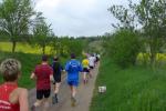 Noch mehr Abenteuer auf der Strecke hatten alle Teilnehmer über den langen Kanten. Der „König-Heinrich-Lauf“ wartete mit 14,3 Kilometern auf und führte nicht nur über weite, satte Wiesenwege. Mit zunehmender Nässe wurden gerade die derben Wurzel- und Steinpfade zur Herausforderung und mancher Sprung in das nächste Matschloch ließ sich mitunter nicht vermeiden. Doch der Regen war inzwischen so stark, dass nach dem letzten Kilometer hinunter nach Quedlinburg, jeder wieder fast sauber war. Neben der Finisher-Medaille erhielten alle Damen eine Rose zum Muttertag und Sylvia Köhn, Jana Berger und Sabine Börner krönten ihren Lauf außerdem mit einem Podestplatz in ihren Altersklassen. Hatten die Herren keinen Einfluss auf die Platzverteilung, stellte Jens-Uwe Börner jedoch beruhigend fest: „Die Berge waren ja im Vergleich zur Harzquerung lächerlich. Alle unverletzt im Ziel, gutes Tempo, ordentlich hoch und runter, Rennsteig wir kommen!“