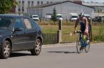 Geschwommen wurde rund um die sogenannte Spülinsel, eine kleine Insel mit Campingplatz, im Hafenbecken von Havelberg gelegen. Die Wasserqualität war trotz des Hochwassers als unbedenklich eingestuft und nicht trüber als auch in den Jahren zuvor. Auf den letzten 500 Metern, bog man dann in den eigentlichen Flusslauf der Havel ein, was ein wenig ''Rückenwind'' bedeutete. Nach guten hundert Metern Laufstrecke zum Wechselbereich, ging es aufs Rad um drei Runden von je 22 km zu absolvieren. Die Strecke ging nördlich von Havelberg über Dahlen, Nitzow um nach 11 km in Quitzöbel zu wenden. Der Wind spielte komischerweise auf der Hin- bzw. Rückstrecke eine Rolle, was die Sache gepaart mit schlechtem Fahrbahnbelag nicht einfacher machte. Das Schöne an Wendepunktstrecken ist aber, das einem seine Mitstreiter wieder entgegen kommen und man so gut einschätzen kann, wo man sich im Feld befindet. Die besten Beine hatte an diesem Tag Thomas Vetter, der die Radstrecke in 01:54:22 Stunden bewältigte, knapp gefolgt von Chris Anders, der trotz Luftproblemen bei den Witterungsbedingungen am Hinterrad von Vetter biß. Für die Meisten war dieser Turn nach rund zwei Stunden gemeistert und es hieß einen schnellen Wechsel hin zu bekommen. Ab in die Laufschuhe.
