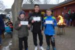 Für ihn ist wichtig, dass die Tradition gepflegt wird. Und dazu gehört eben auch dieser Lauf. Noch wichtiger als Punkte und Platzierungen sind für Krokotsch, dass die Geselligkeit in seinem Verein aufrecht erhalten wird. Dieses Zusammenkommen um die Jahreswende gehört einfach zum Vereinsleben. Und dafür hatten sich die aktiven Sportfreunde wieder mächtig ins Zeug gelegt, schmierten Fettstullen, feuerten den Grill an. Für die Kinder entzündeten Danny Glockenmeier und Philipp Herning Fackeln um den Sportplatz. Nach zwei Runden konnten sich die schnellsten drei – Leon Tangermann, Jonas Stelter und Conner Tangermann – über Gutscheine fürs Erlebnisbad im Salzlandcenter Staßfurt freuen. Alle kleinen Teilnehmer erhielten noch Überraschungseier, natürlich auch die Zwillinge Frieda und Friedrich, die zur Erwärmung sogar eine Runde vor dem eigentlichen Rennen rannten. Die Erwachsenen mussten ein paar Meter mehr durch die Feldflur absolvieren, bevor die Besten ihre Trophäen in Form von Karpfen und flüssigen „Spaßmachern“ in Empfang nehmen konnten. Bei den Frauen war das Andrea Frey, bei den Männern Nico Mahler und als ältester Teilnehmer Peter „Schacki“ Muster.