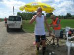 Fünf weitere Gaensefurther gingen am schönen Meisdorfer Schloss an den Start. Der Veranstalter registrierte mit 102 Teilnehmern über diese Distanz einen neuen Teilnehmerrekord. Alle samt sollten dann auf den ersten Kilometern gleich mal ordentlich schwitzen, denn es war nicht nur drückend feucht, es ging auch stetig bergauf. Keine Schwäche zeigen, schließlich gingen in Stiege bereits um sieben Uhr die Ultraläufer über 69 Kilometer an den Start und ab Alexisbad kämpften sich Sportler über die Marathondistanz bis ins Ziel nach Quedlinburg. Im Schatten der Wälder erreichte man Ballenstedt. Vorbei am Schloss blieb der idyllisch angelegte Schlossgarten leider links liegen. Dafür dann aber gute Sicht zur Roseburg und dem Harzer Wahrzeichen, dem weit entfernten Brocken. Bergauf, bergab erreichten die Läufer den Osterteich. Neidisch schweifte der Blick zu den Badenden. Ein Wegweiser verriet den nächsten Anstieg: Osterhöhe. Spätestens oben angekommen, wünschten sich die Flachlandläufer ihre lässigen Trainingsrunden in der Staßfurter Horst zurück. Der Abstieg nach Bad Suderode versprach Erholung. Noch einmal am Verpflegungspunkt gestärkt, ging es nun vorbei an der Bückemühle in Richtung Quedlinburg. Die Sonne brannte erbarmungslos, kein schattenspendender Baum, jede Anhöhe wurde nun zur Tortur. Auf der endlos erscheinenden Straße nach Quedlinburg flimmerte am Horizont eine Tankstelle in der Mittagssonne. Mühsam kam der Tross voran und obwohl die Straße vollkommen eben war, sah man immer mehr Sportler vom Lauf in den Fußmarsch wechseln. Nur gut, vor der Tankstelle kommt noch mal ein Getränkestand! Waren dann aber doch Kartoffeln, das Kilo für 2,00 € – so muss es einem bei einer Fatamorgana ergehen. Das Ortsschild war passiert, der Stadionsprecher war schon zu hören. Nur beim letzten Schlössermarathon in Potsdam erlebten die Bode-Runners wohl eine ähnlich quälende Sportplatzrunde. Trinken, Schatten, wieder trinken, Schatten. Respektvoll verfolgte man das Einlaufen der ersten Marathonläufer. Neben Schölers freute sich auch Sylvia Köhn über ihren ersten Platz in der Altersklasse der Frauen. Gut über die Anhöhen gekommen, war sie sichtlich stolz, diese lange Distanz erstmals ins Ziel gebracht zu haben. Die kommende Trainingswoche widmen die Bode-Runners ganz der Regeneration. Schwimmen und Radfahren im gemütlichen Tempo stehen auf dem Plan. Ob sie den Plan wohl einhalten werden?