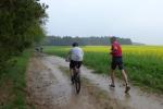 Noch mehr Abenteuer auf der Strecke hatten alle Teilnehmer über den langen Kanten. Der „König-Heinrich-Lauf“ wartete mit 14,3 Kilometern auf und führte nicht nur über weite, satte Wiesenwege. Mit zunehmender Nässe wurden gerade die derben Wurzel- und Steinpfade zur Herausforderung und mancher Sprung in das nächste Matschloch ließ sich mitunter nicht vermeiden. Doch der Regen war inzwischen so stark, dass nach dem letzten Kilometer hinunter nach Quedlinburg, jeder wieder fast sauber war. Neben der Finisher-Medaille erhielten alle Damen eine Rose zum Muttertag und Sylvia Köhn, Jana Berger und Sabine Börner krönten ihren Lauf außerdem mit einem Podestplatz in ihren Altersklassen. Hatten die Herren keinen Einfluss auf die Platzverteilung, stellte Jens-Uwe Börner jedoch beruhigend fest: „Die Berge waren ja im Vergleich zur Harzquerung lächerlich. Alle unverletzt im Ziel, gutes Tempo, ordentlich hoch und runter, Rennsteig wir kommen!“