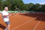 Zum angesetzten Zeitpunkt des Festes war das Tennis-Turnier in seiner Endphase angelangt und die Gäste von Bode-Runners und Triathlon konnten den spannenden Kampf des Endspieles zwischen Achim Engel und Steffen Mattheis verfolgen. Letztgenannter ging am Ende als Gesamt-Sieger hervor und löste die AK-Meister Achim Engel (Herren 60) und Ronny Selig (Herren) als Vereinsmeister des Vorjahres ab, denn diesmal gab es für alle nur die Ausschreibung im Einzel.