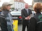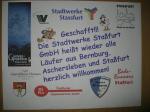 Nachdem sich zu früher Stunde bereits eine große Gruppe von Läufern der beteiligten Laufgruppen vor der Gaensefurther Schlossbrunnen Wüllner GmbH eingefunden hatte, verabschiedete deren Geschäftsführer Horst Braunisch die Teilnehmer, nicht aber ohne ihnen einen PKW voll mit erfrischendem Naß mit auf die Reise zu geben. Über die Roßbahn ging es dann zur 1. Etappe nach Staßfurt zu den Stadtwerken, wo die Läufer schon von OB René Zok und Betriebsangehörigen erwartet wurden. Die Übergabe der Staffelstäbe und die Einnahme einer kleinen Wegzehrung hingegen mussten zügig abgewickelt werden, hatte man doch durch einen Termin bei der LAGA in Aschersleben einen straffen Zeitplan vorgegeben. Wenn die Landesgartenschau für die älteste Stadt Sachsen-Anhalts das absolute Highlight des Jahres ist, warum nicht auch in den diesjährigen Stadtwerkelauf einbinden, dachten sich die Läufer von Ascania Aschersleben und sorgten damit für eine nette Bereicherung der Tagesplanes. Bei warmen, aber angenehmen Wind ging es weiter nach Bernburg, entlang der Bode und der Saale, deren Auen sich frühlingshaft geschmückt zeigten. Schon allein dieses Flair entschädigte für so manche Strapazen. In Bernburg bei den Stadtwerken angekommen, folgte dann der gewohnt herzliche Empfang mit Übergabe der Grußbotschaften, ergänzt durch einen leckeren Imbiß und weiter ging’s. An Verpflegung unterwegs mangelte es ebenfalls nicht. Die von Gaensefurther gesponserten Getränke und die Lunchpakete vom Speiseservice RiRo ließen diesbezüglich fast keinen Wunsch offen. Hatte trotz alledem ein Aktiver konditionelle Probleme, konnte er sich in einem der vier Begleitfahrzeuge erholen. 2 Sportler mussten leider ihren Plan, die gesamte Strecke durchzulaufen, nach 50 km aufgeben, denn das hohe Lauftempo forderte seinen Tribut. Bei dieser Eile übersah dann in den engen Promenaden von Aschersleben prompt ein Läufer einen Poller und es kam zu einer schmerzhaften Kollision. Aber zum Jammern blieb wenig Zeit, denn die Landesgartenschau wartete. Auf der Bühne im Weingarten war dann einige Prominenz versammelt und mittendrin unsere Helden mit den flinken Beinen, überwältigt vom folgenden Blitzlichtgewitter. Nachdem die eigentliche Mission des Laufes, die Übergabe einer Grußbotschaft auch an die Stadtwerke Aschersleben abgehandelt war, die die gute Zusammenarbeit auf kulturellem, wirtschaftlichen und natürlich sportlichem Gebiet dokumentieren soll, folgte die letzte Etappe der insgesamt 70 km langen Strecke.